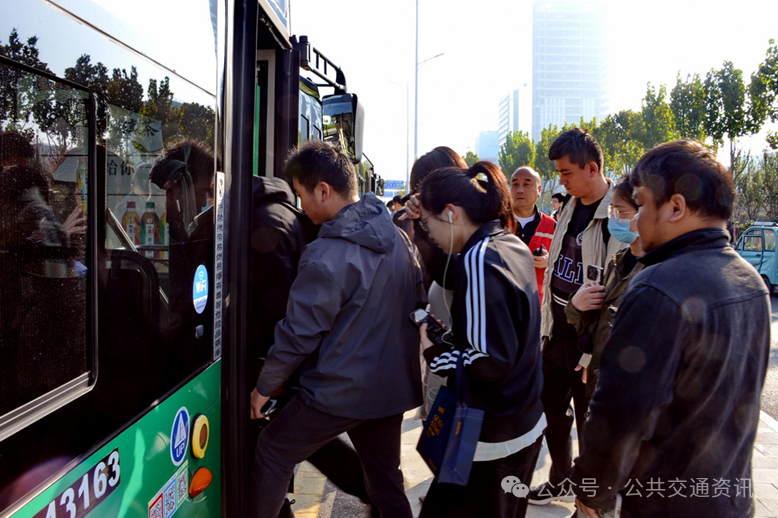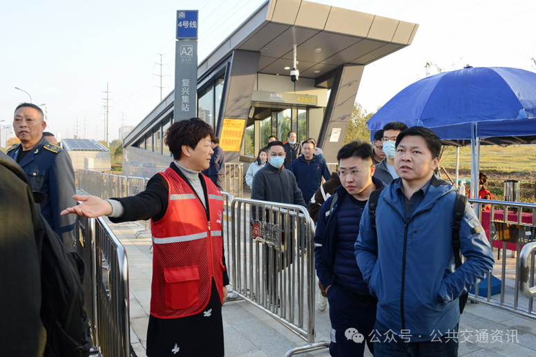 又一批轨道乘客在复兴集站换乘公交接驳专线继续前行。