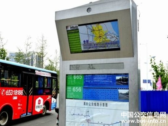 2015年12月份,在安徽省合肥市府广场公交枢纽站,乘客正在查看智能公交站牌。通过电子站牌,乘客可方便地自助查询公交线路走向、途经道路、停靠站点、当前公交站点位置等公交服务信息。