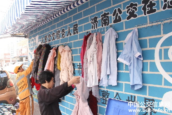 来自济南公交的“全国五一劳动奖章获得者”徐维玉和公交志愿者代表及花粉俱乐部成员亲自绘制了主题为“人民公交服务人民济南公交在您身边”的爱心墙。徐维玉和花粉代表首先将第一批捐赠的爱心物资悬挂到爱心衣物悬挂区,后期还将把小件衣物叠放放到开放式橱柜里,把雨伞、雨衣、医药箱、蜡烛、针线盒、打气筒等便民利民物品放到便民用品区,方便需要它的市民使用。爱心墙使用后,遇到雨雪大风等恶劣天气时,维护小组成员将爱心物品遮盖,并定期进行维护。随后大家共同参观了“徐维玉劳模工作室”、对徐维玉“学雷锋标兵车组”举行了挂牌仪式,最后志愿者们在站牌开展了志愿服务活动,打扫候车亭卫生,发放便民乘车图和乘客问卷调查。