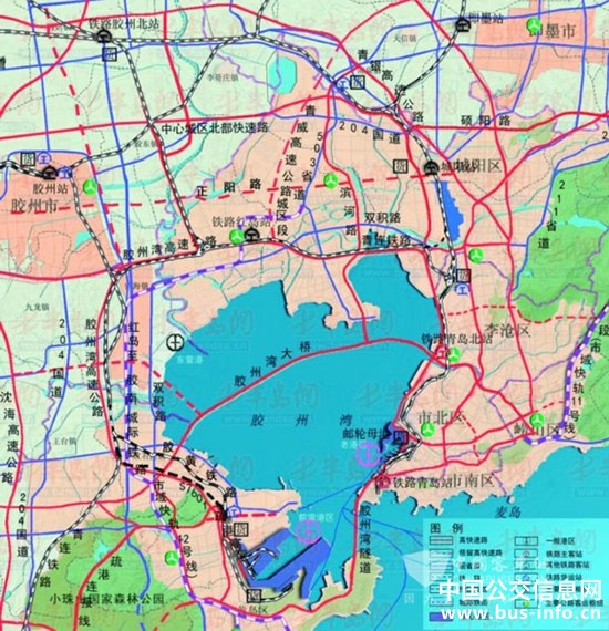 构建陆海空一体的对外综合交通网络。建设由客运专线、城际铁路和普通干线铁路构成的多层次、互联互通的铁路网络,规划期内以铁路青岛站、铁路青岛北站为铁路主客站,建设铁路红岛站和铁路胶南站,改扩建铁路胶州北站;建设济青高铁、潍莱城际、青连铁路、青岛至海阳城际铁路青岛段、红岛至胶南城际铁路、董家口港疏港铁路、晋中南部铁路连接线工程。延续港群的布局模式,推动港铁联运,打造东北亚国际航运中心。建设青岛新机场,定位为区域性国际枢纽机场,机场飞行等级为4F级。