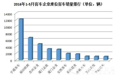 2016年1-5月客车企业座位客车销量排行(单位:辆)