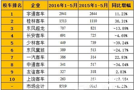 2016年1-5月客车企业校车销量排名表(单位:辆)