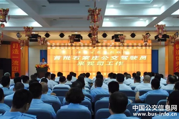 2016年7月4日,保定公交总公司举行隆重欢迎仪式,热烈欢迎石家庄公交公司首批45名公交驾驶员来司工作。会上保定公交公司总经理张智勇、石家庄公交公司副书记刘卫平发表了热情洋溢的讲话,对此次双方协议的达成给予了高度评价,保定公交总公司七公司经理张晓峰、石家庄职工代表李利做了真诚朴实的发言,在双方领导和职工的共同见证下,签署了双方劳动用工合作协议。会后董事长杨冬梅亲自带领全体班子成员到石家庄公交职工的住处看望职工。充分表达了保定公交领导及职工的热情和诚意,使石家庄公交领导和职工深受感动和鼓舞。