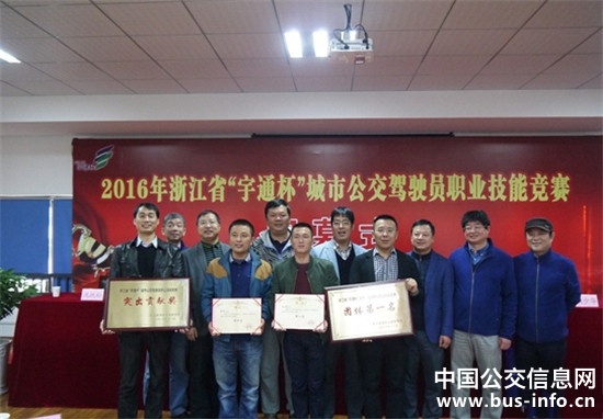2016年11月9日—10日,2016年浙江省“宇通杯”城市公交驾驶员职业技能竞赛在浙江省湖州市鹿山驾校举办,来自浙江省11个地市及义乌共12个代表队的24名公交驾驶员参加了比赛,最终评选出个人奖8名、团体奖6名以及优秀组织奖、杰出贡献奖等。