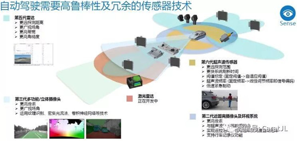 博世则是对这两种技术路线同步开发,一方面其作为供应商要为车企提供从ADAS到自动驾驶的完善技术,另一方面是与戴姆勒联合开发L4及以上的无人驾驶出租服务。