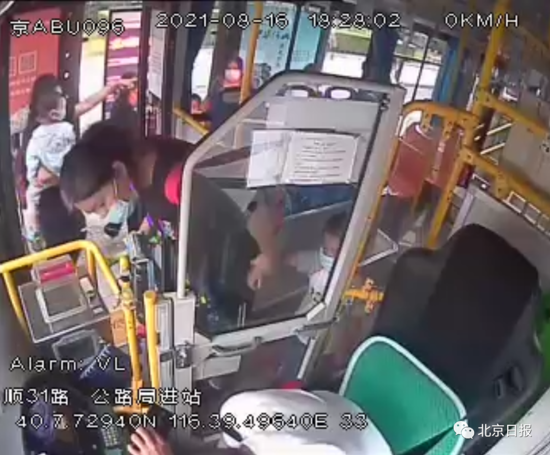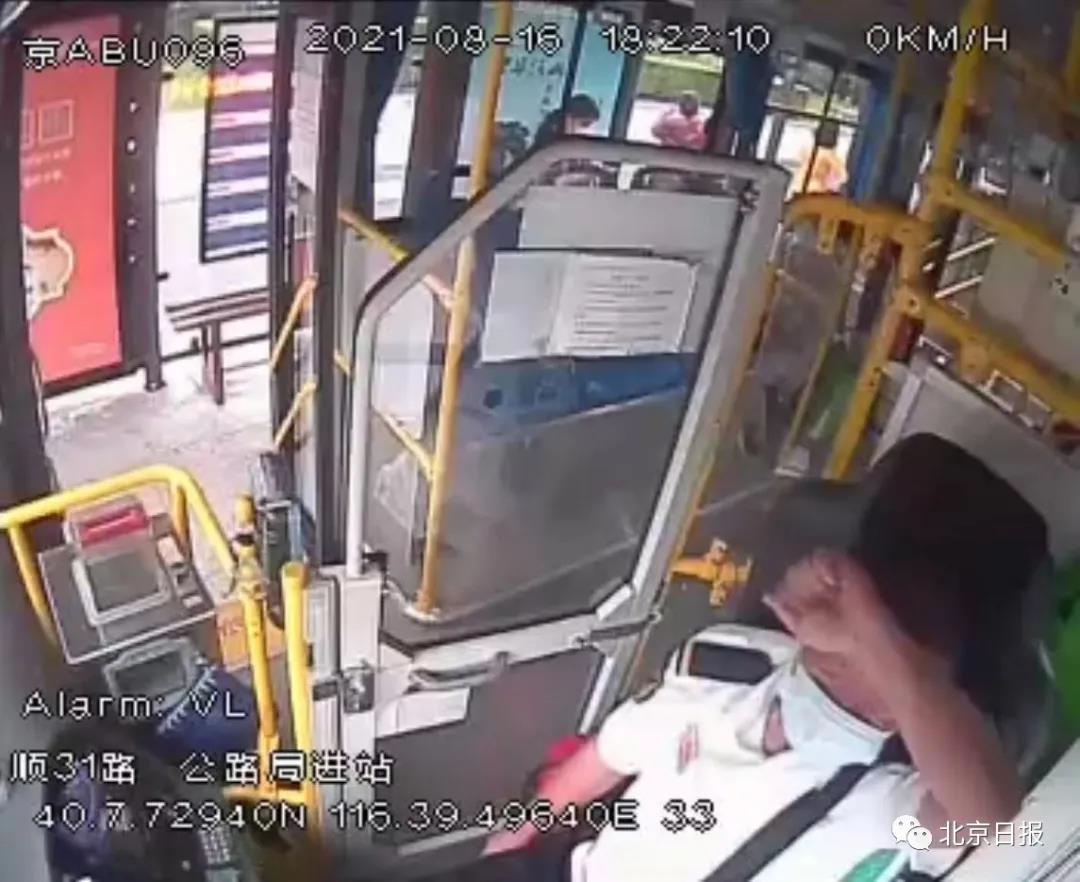 18时19分,王师傅驾驶的顺31路公交车行驶在俸伯大桥上,此时王师傅已经感觉身体不适,他不时地用手按压太阳穴,视频中他紧握方向盘,车辆非常平稳地行驶。