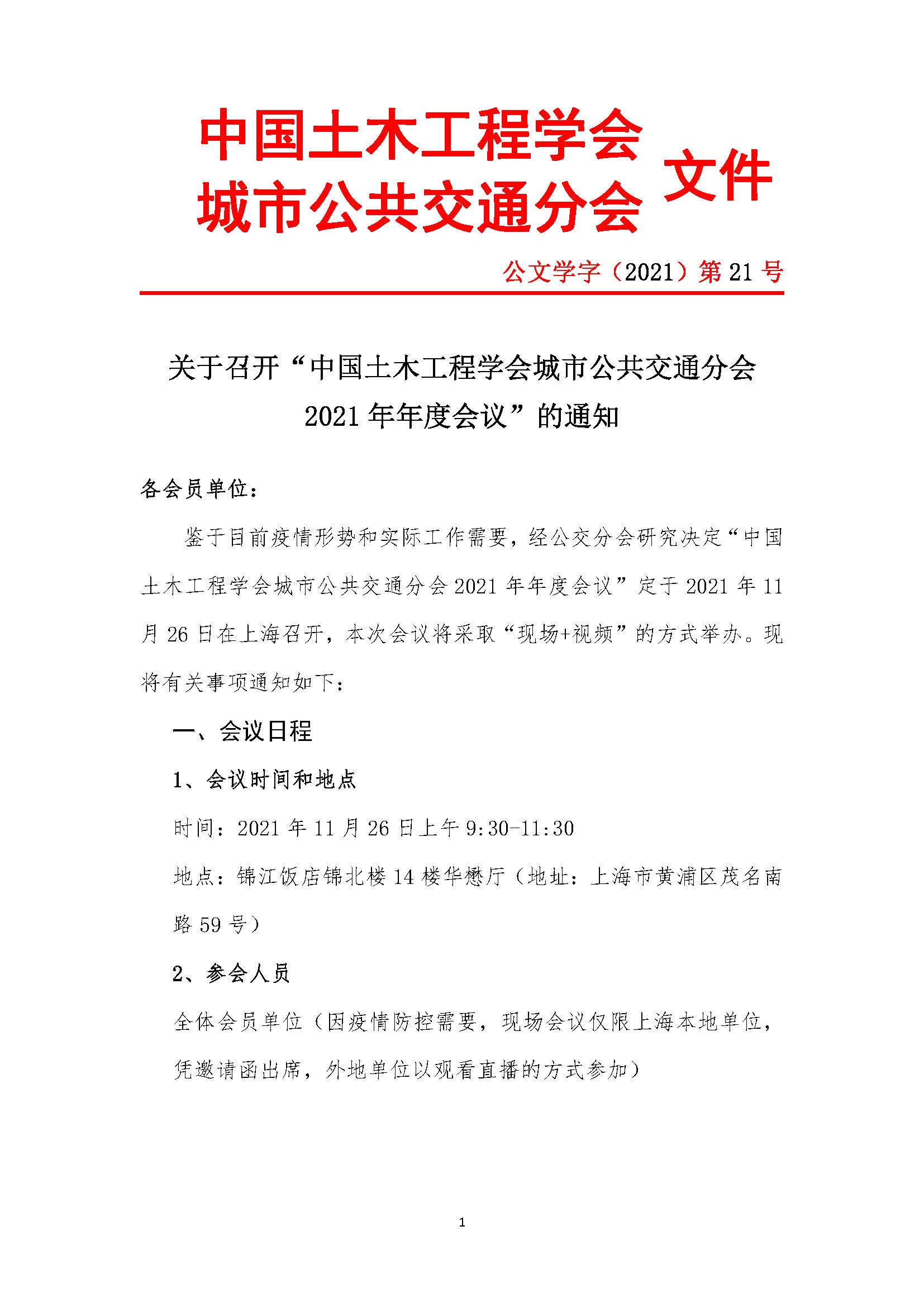 关于召开“中国土木工程学会城市公共交通分会 2021 年年度会议”的通知