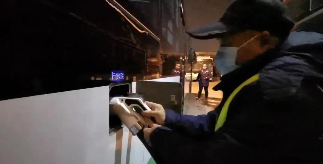 1月31日大年三十,晚11点,当人们都围坐一起收看春节联欢晚会,沉浸在阖家团圆的欢乐时刻,在黄陂钓台道新客运中心的公交枢纽站,一名身穿公交制服的充电管理员开始紧张忙碌:他先是推门上车,查看、记录剩余电量,然后启动车辆,缓缓倒进一个腾空的充电桩位,停稳下车,再一路小跑来到车尾,熟练插上充电枪,转身观察充电情况,确保安全无误后,再走向另一辆公交车......