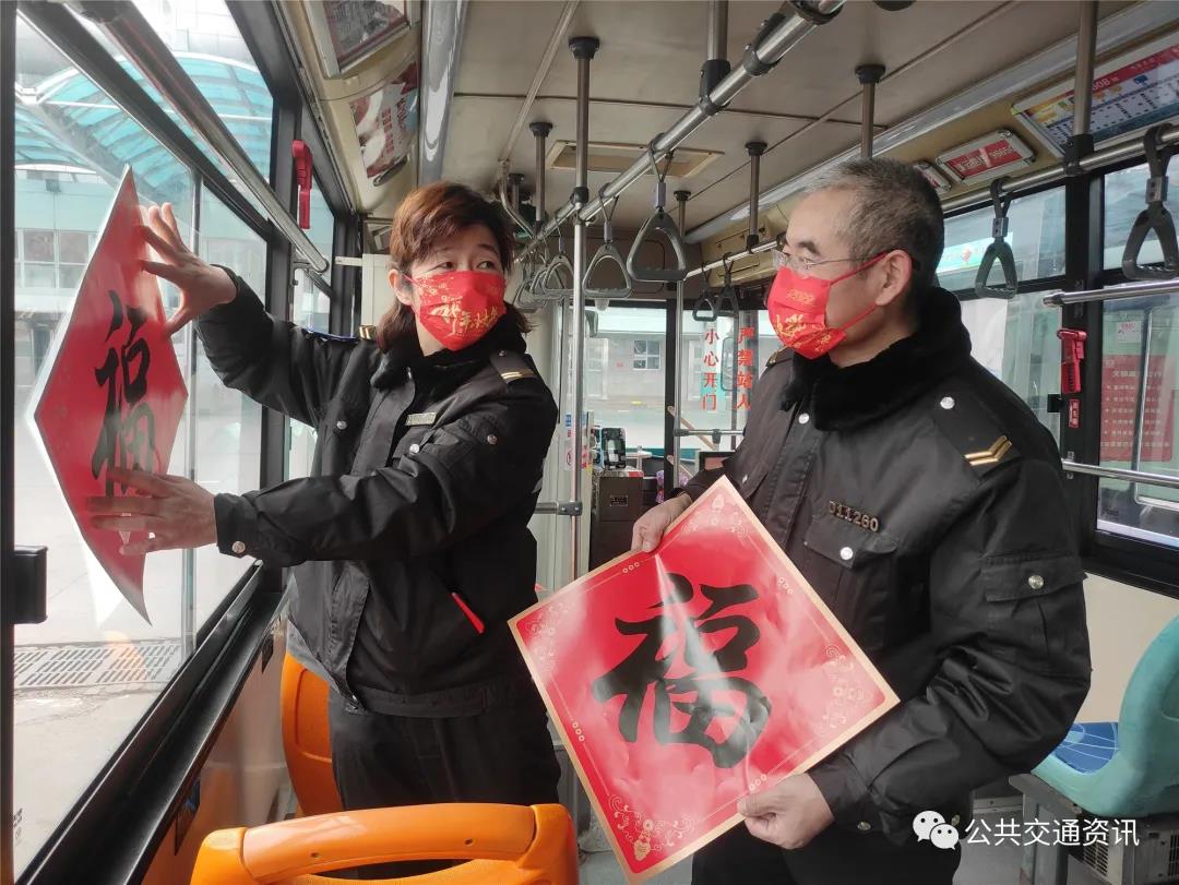 “您好,欢迎乘车,请出示健康码,上车站稳扶好。”2月4日早晨8时,人们都着盛装提礼品走亲访友,608路张君华却换上整洁的工装开始了她一天的工作。车子稳稳地驶出站台,中国结、福字、红灯笼,车内是浓浓的年味,这是她和丈夫王建华一起装扮的。张君华是青岛本地人,自从2011年来到温馨巴士成为一名驾驶员后,每个春节假期她都会选择坚守岗位。而她的丈夫王建华同为608路驾驶员,这些年来,也一直陪她坚守。今年,已经是他们入行以来第10次“携手”在方向盘上度过春节假期了。