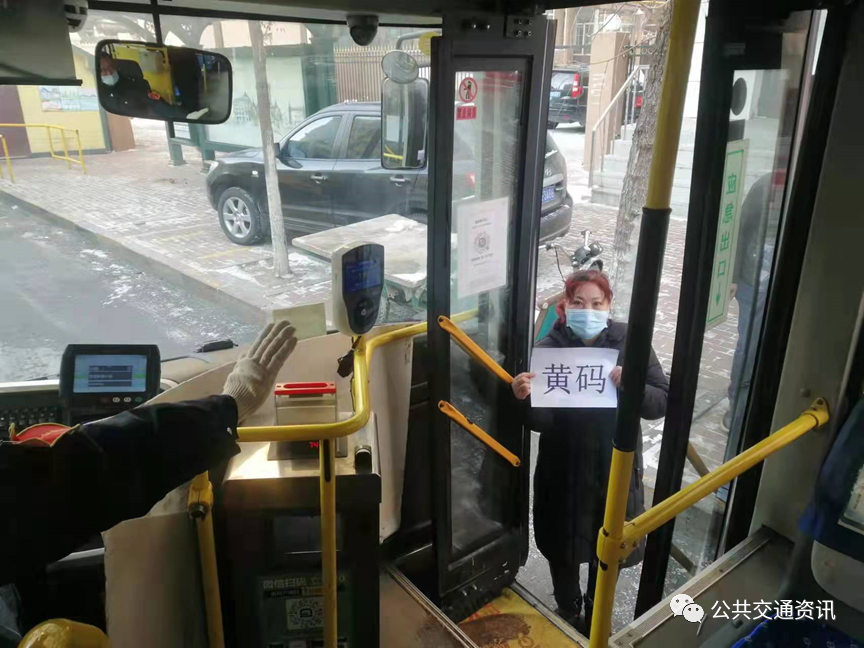公交车上客门是第一道安全屏障。车门处张贴专车专用龙江健康码,乘客需扫描并出示绿色健康码方能乘车,若发现黄码乘客,驾驶员应拒绝乘客上车,劝其回社区报到;若发现红码乘客,驾驶员应立即关闭车门,疏导乘客向车厢后部移动,之后采取报警或通知公司人员按照规定处置,相关车辆将进行全面的消杀,驾驶员按规定居家隔离,做核酸检测。车辆运营期间,如发现乘客未佩戴或未正确佩戴口罩,驾驶员应主动提醒。