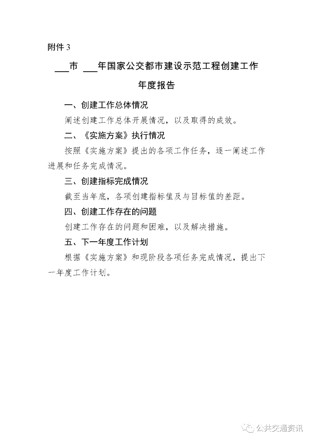 附件3:________市________年国家公交都市建设示范工程创建工作年度报告