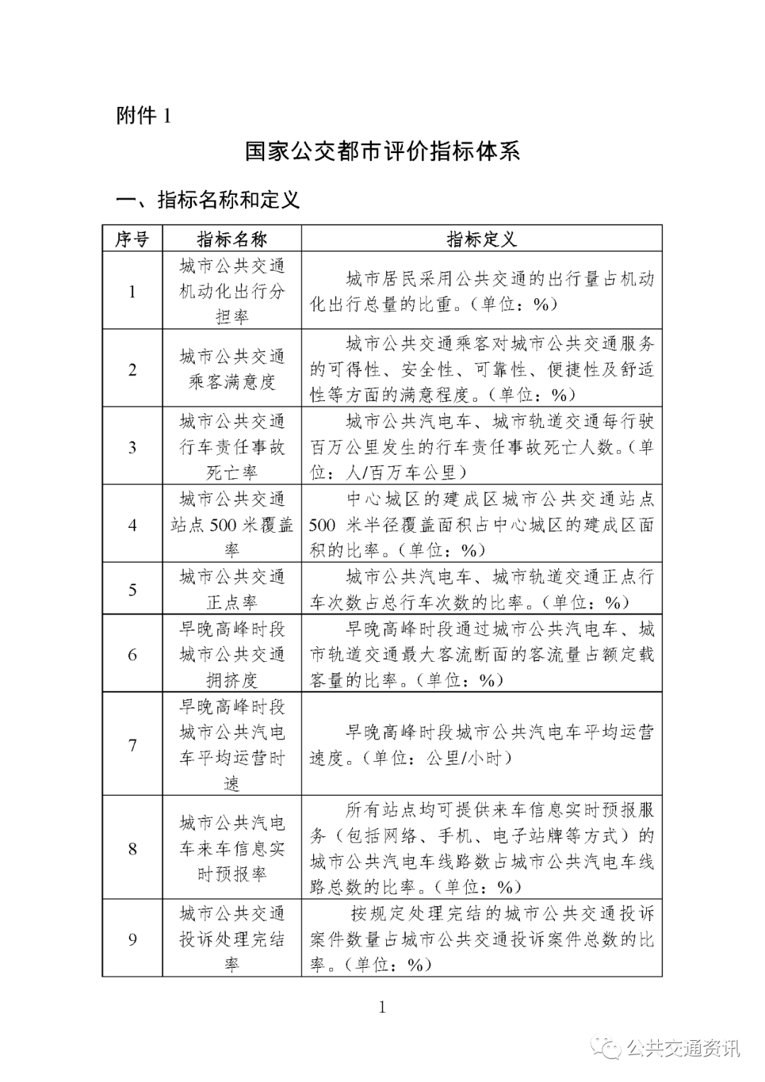 附件1:国家公交都市评价指标体系