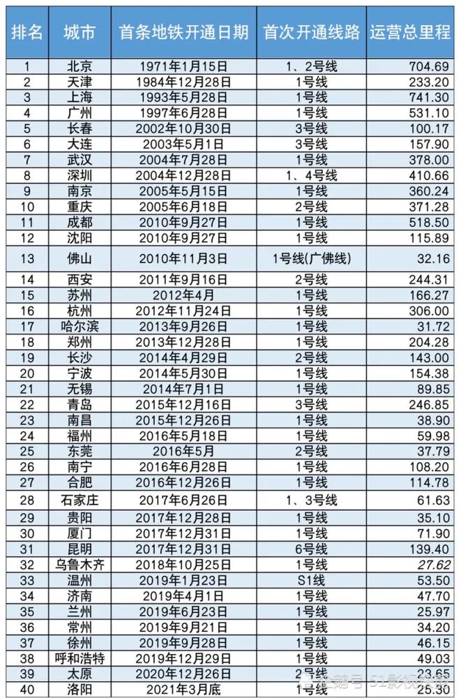 截至2021年4月份,我国内地城市陆续共有40个城市开通了轨道交通系统。详情见下图: