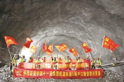 户口隧道位于温州市永嘉县境内,全长7756.65米,最大埋深750.5米。由于该隧道地质条件复杂,围岩以V和VI级为主,施工难度大、安全风险高,施工方多次研究、细化方案。在施工过程中,突破高地温、岩爆、涌水等不良地质影响,以及持续高温等诸多困难,全力保障这一高风险隧道顺利贯通。