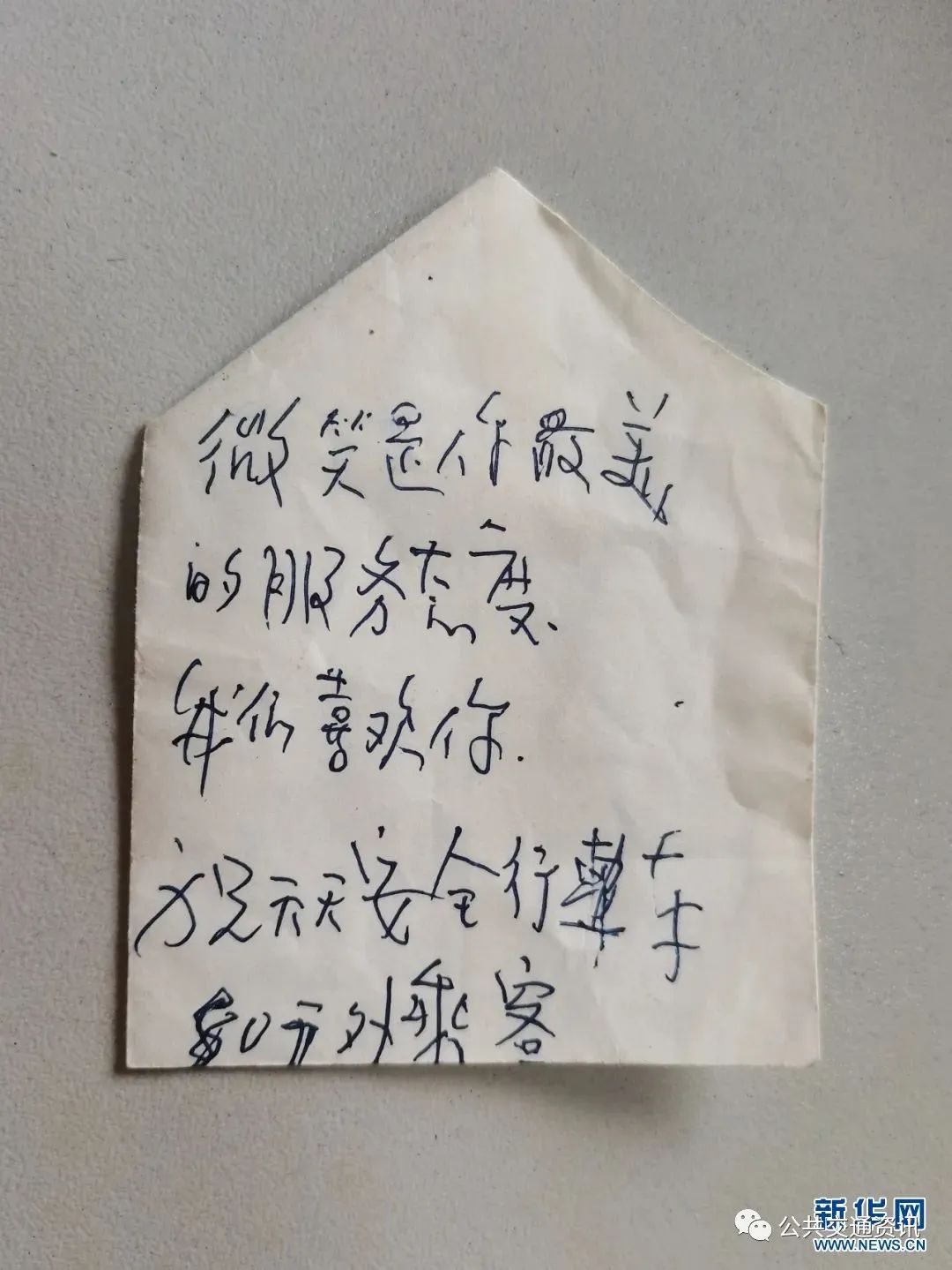 80多岁老人手写给周国花的纸条。新华网发