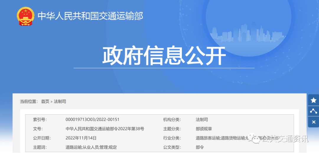 交通运输部关于修改《道路运输从业人员管理规定》的决定(中华人民共和国交通运输部令2022年第38号)