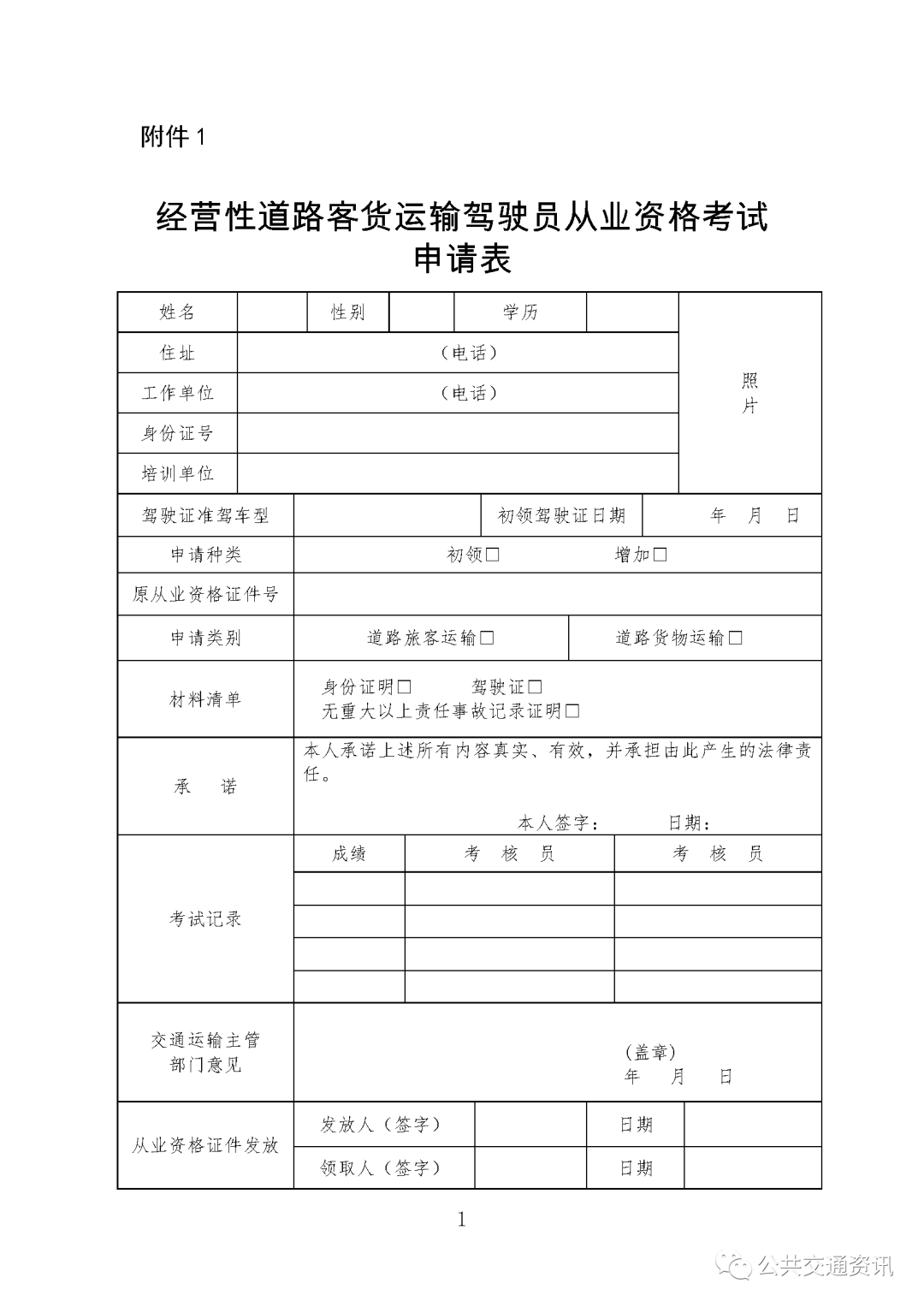 附件1 经营性道路客货运输驾驶员从业资格考试申请表