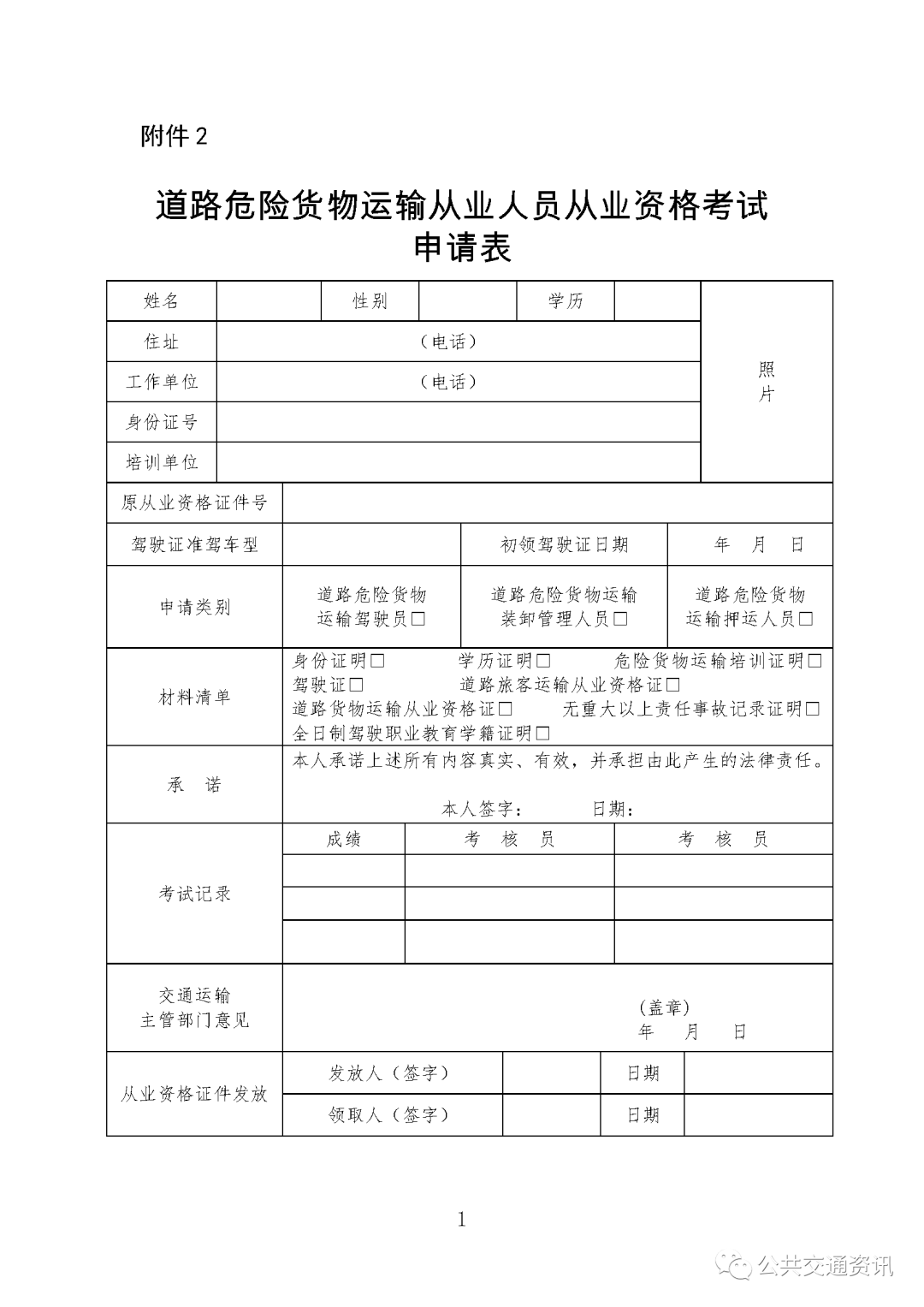 第十六条 申请参加道路危险货物运输驾驶员从业资格考试的,应当向其户籍地或者暂住地设区的市级交通运输主管部门提出申请,填写《道路危险货物运输从业人员从业资格考试申请表》(式样见附件2),并提供下列材料: