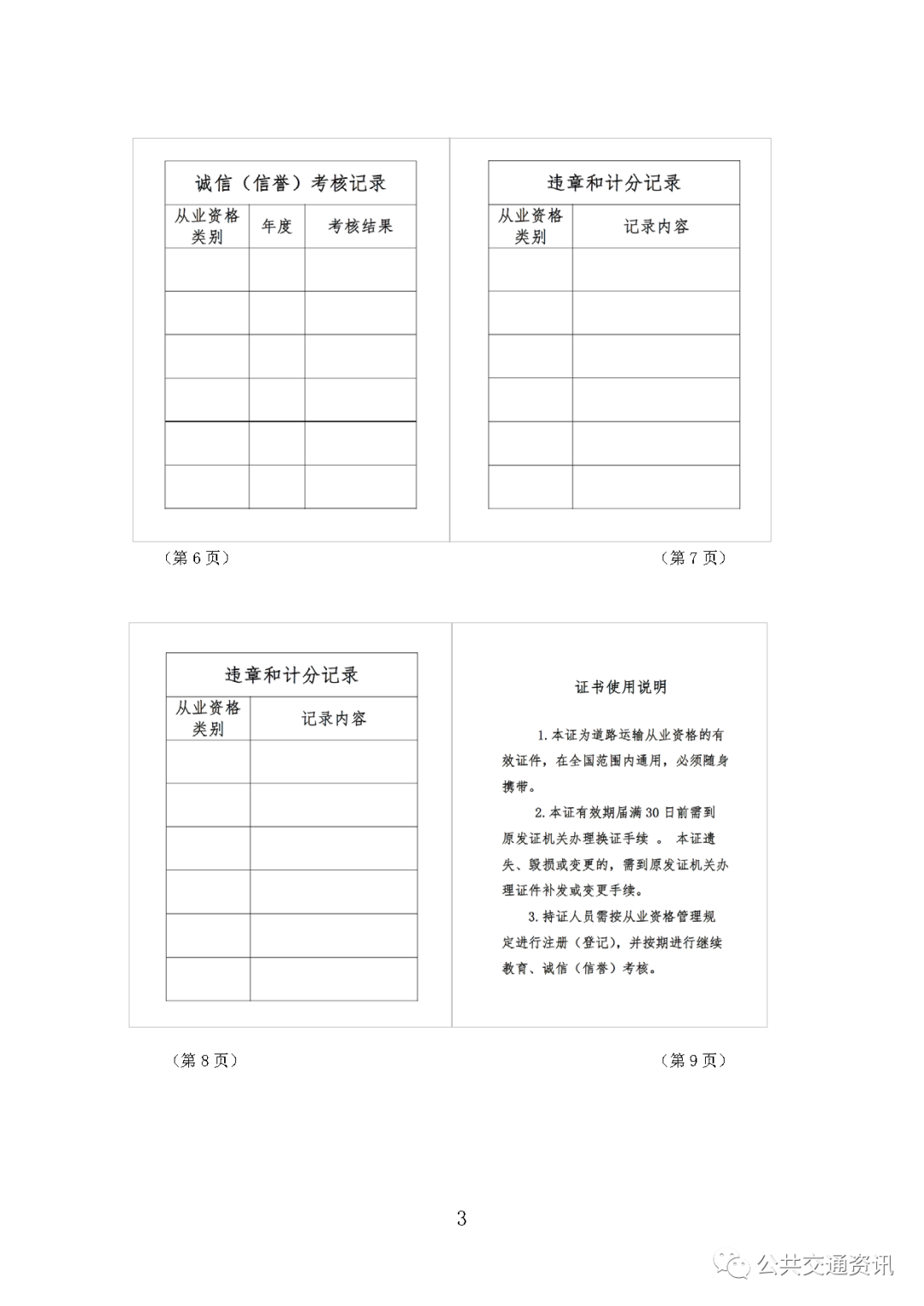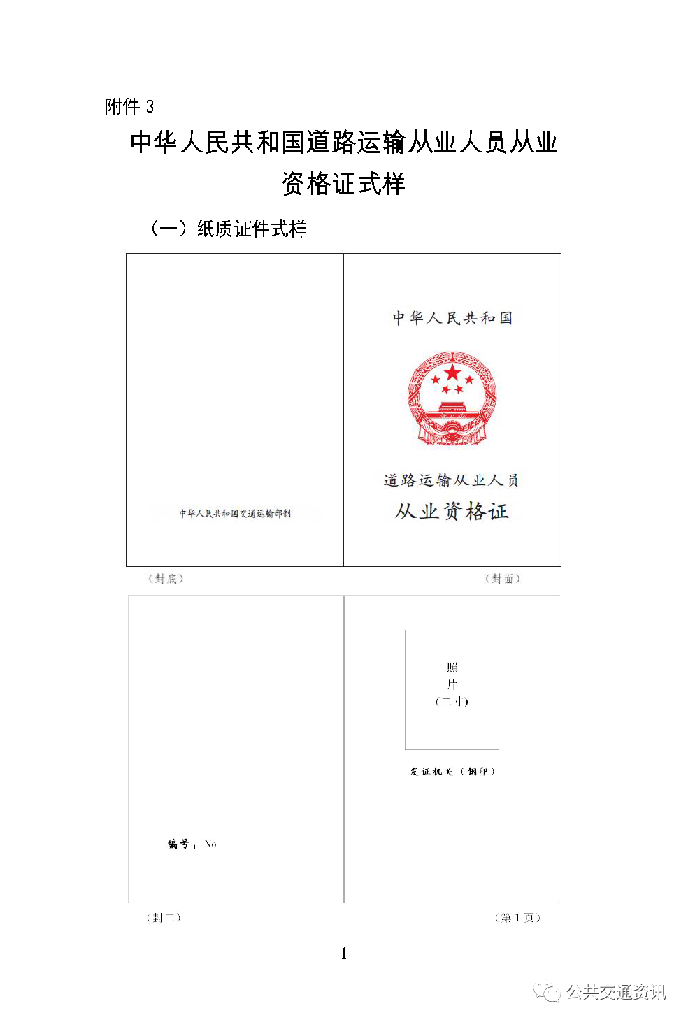 附件3 中华人民共和国道路运输从业人员从业资格证式样