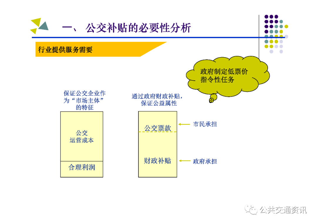 二是宏观政策有明确的规定,中共中央、国务院、交通运输部等部门出台和即将出台的政策、法规和部门规章,均明确城市人民政府应当对公交企业执行低票价造成亏损进行补贴补偿,合理确定公交财政补贴额度;