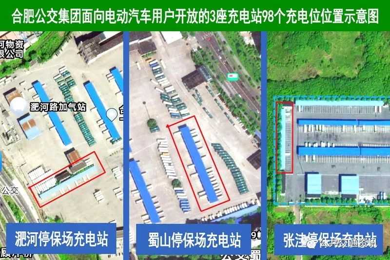 随着新能源汽车技术的日渐成熟和推广普及,为积极响应国家绿色低碳出行的号召,越来越多的合肥市民选择购买电动汽车作为出行工具,全市电动车辆保有量不断增多,社会充电需求日渐增加。但目前遇到最为棘手的问题就是电动汽车“充电难”,个人安装电动汽车充电桩牵涉到电路扩容、充电桩布设、车位产权、物业许可、安全防护等一系列问题,且手续繁琐,无一不困扰着电动汽车用户。合肥公交集团面向电动汽车用户开放充电的3座充电站98个充电位位置示意图。