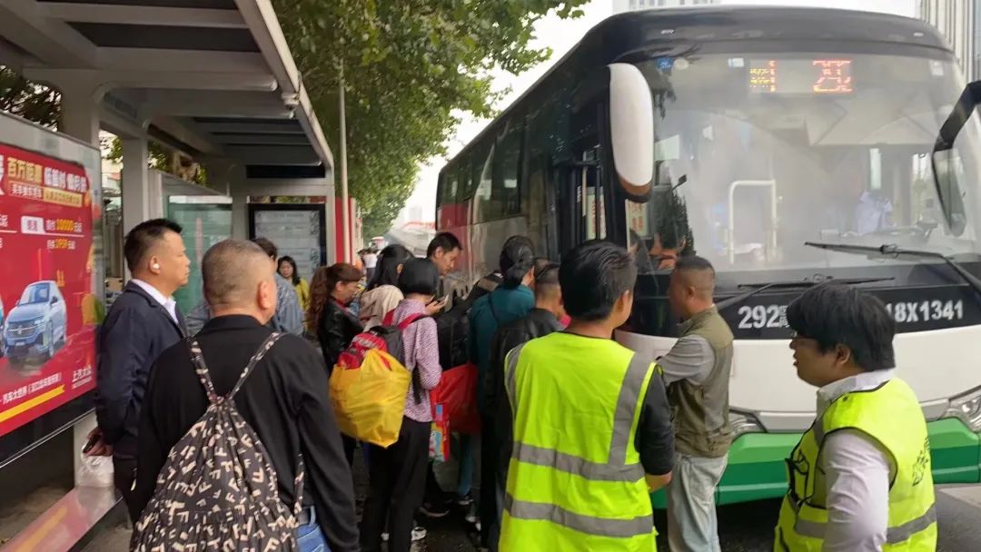 6日上午10时,黄陂钓台道新客运中心公交枢纽站,前往武汉城区的返程客流出现小高峰,终点站分别到汉口火车站和金桥大道市民之家的公交292路、292Q路管理人员全部来到起点站现场调度,要求所有待发车辆提前进站上客,发车时间也缩短为5--6分钟,基本上上满人就走的同时,根据客流量的变化,及时采取增加车次、缩短发车间距、增开跨线支援车等措施,力保远城区市民顺利抵达市内。