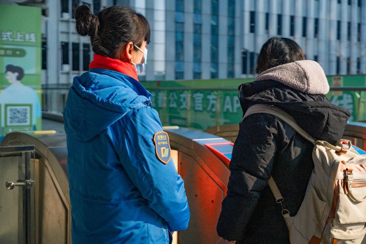 千余名成都公交志愿者在各开放式场站巴士驿站、二环高架站厅、火车站、机场等大客流点位设置服务台,为有需要的市民游客提供乘车指引、重物提拿等便民暖心服务,服务总时长2300余小时、服务乘客10万余人。
