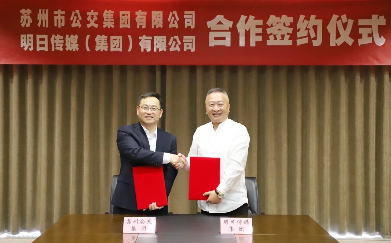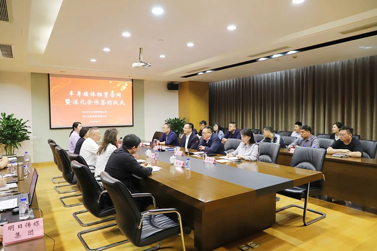 签约仪式现场,苏州公交集团与明日传媒集团的代表共同签署了车身媒体租赁合同。此次车身媒体招租,公交集团强化资源整合统筹,将市区公交车身媒体由分散出租经营调整为整体招租,避免内部同业竞争,通过公开竞标的方式,最终实现同比去年车身媒体收入30%以上的增长。