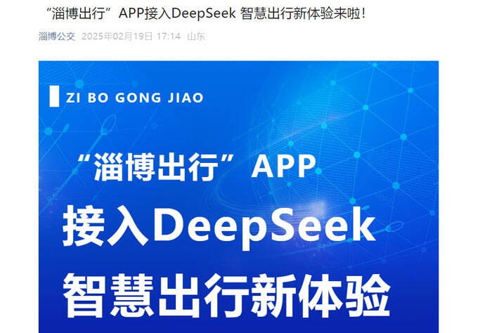 齐鲁网·闪电新闻2月21日讯 2月21日,记者从“淄博公交”公众号获悉,自2月19日起,“淄博出行”APP接入DeepSeek,成为运用此技术的公交出行APP,将为市民和游客提供更加便捷、智能、美好的公交出行体验。