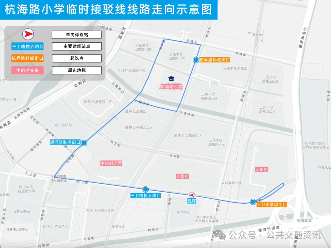 为进一步提升公共交通服务水平,切实解决学生出行难题,杭州公交通过公交小灵通进社区收集到的市民的意见建议,再到现场踏勘后研究决定,自9月1日起,开通试运营杭海路小学临时接驳线。此条线路的开通为三卫路沿线天铂府、时光里等小区的学生,提供更加便捷、高效的出行选择。