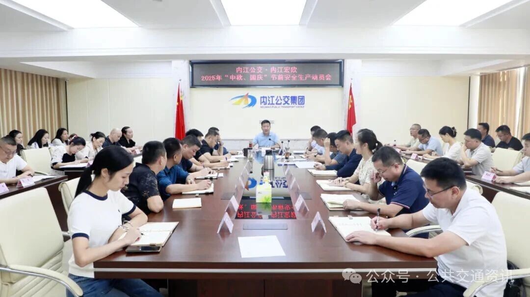 9月24日下午,内江公交集团在机关五楼会议室召开2025年“国庆、中秋”节前安全生产动员会。集团党委书记、董事长蒋光宁出席会议并作部署要求。
