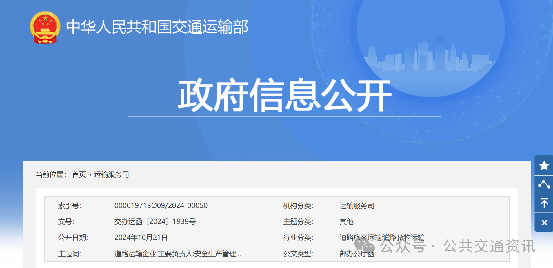 为贯彻落实《交通运输部关于印发〈道路运输企业主要负责人和安全生产管理人员安全考核管理办法〉〈道路运输企业主要负责人和安全生产管理人员安全考核大纲〉的通知》(交运规〔2024〕8号)有关规定,更好支撑开展安全考核工作,交通运输部组织制定了道路运输企业主要负责人和安全生产管理人员安全考核题库,现公开发布,请各省级交通运输主管部门按规定认真组织考核工作。