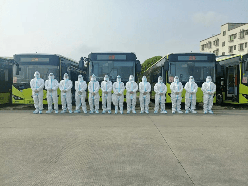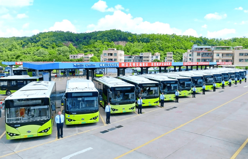 中山公交集团新能源车辆列阵,驾驶员整装待发