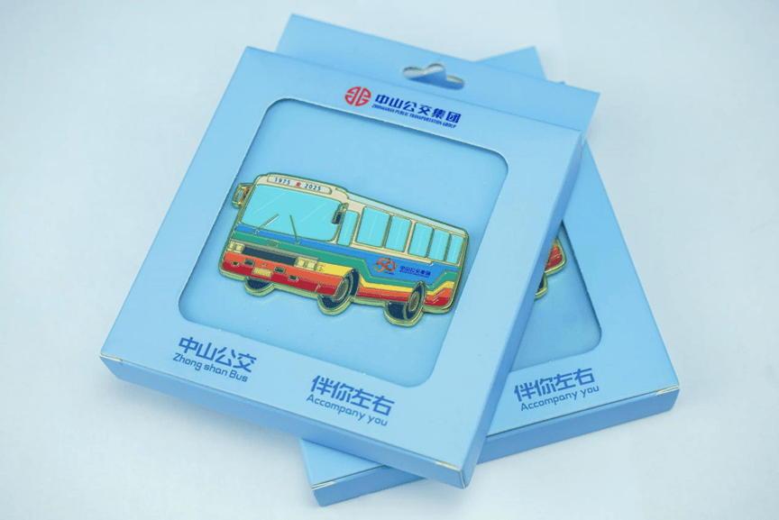 推动“公交+文创”融合创新,让企业精神与城市故事走出车厢、融入日常。围绕“城市记忆、线路情怀、地标符号”三大主题,打造了一系列兼具历史情怀、时代特色与实用价值的文创产品:从以市花、深中大桥等城市标志为元素的系列纪念章,到复刻经典车型的公交车玩偶;从融合跨市线路特色的深中公交周年纪念币与冰箱贴,到融入日常出行的笔记本套装、保温杯、文创雨伞等周边……这些文创产品不仅是企业发展的实物见证,更是连接市民情感、传递城市文化、凝聚集体认同的情感纽带。