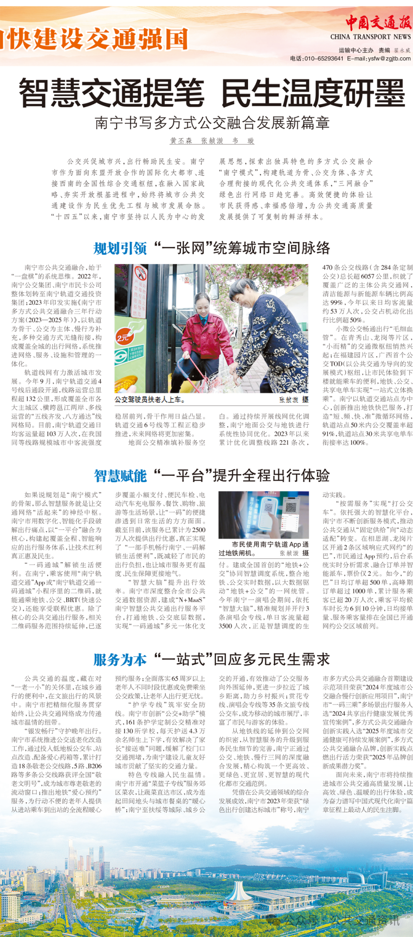 公交兴促城市兴,出行畅助民生安。南宁市作为面向东盟开放合作的国际化大都市、连接西南的全国性综合交通枢纽,在融入国家战略、夯实开放根基进程中,始终将城市公共交通建设作为民生优先工程与城市发展命脉。“十四五”以来,南宁市坚持以人民为中心的发展思想,探索出独具特色的多方式公交融合“南宁模式”,构建轨道为骨、公交为体、各方式合理衔接的现代化公共交通体系,“三网融合”绿色出行网络日趋完善。高效便捷的体验让市民获得感、幸福感倍增,为公共交通高质量发展提供了可复制的鲜活样本。