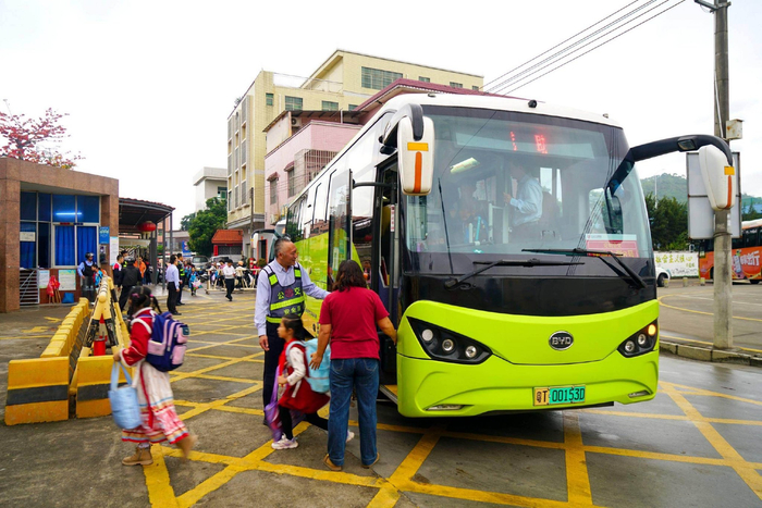 开学当天的守护,从清晨便已就位。6时20分,五桂山南桥村委接送点,定制公交驾驶员杨文斌已等候在此。看到学生们背着书包、朝气蓬勃走来,他立刻上前引导,随车照管员轻声叮嘱:“同学们记得系好书包带,上车后要坐稳扶好,别在车厢里随便走动哦!”一句句温暖的提醒,让开学之路满是安心。