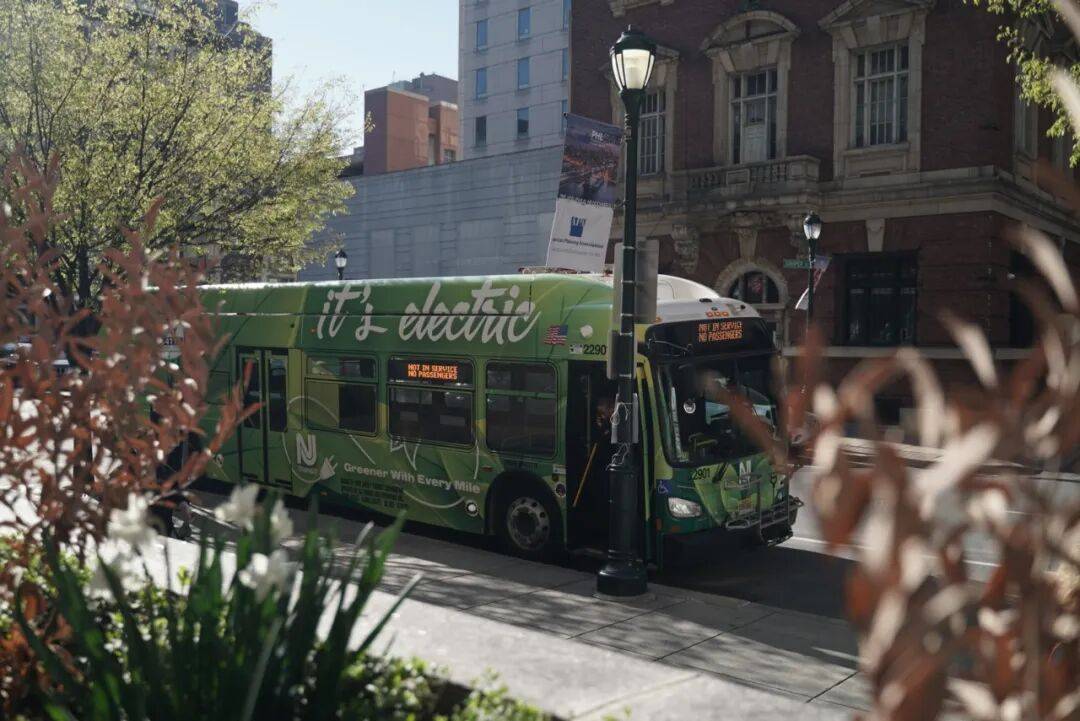 图一、新泽西州公共交通车队的一辆电动公共汽车正在运行中。图:Shutterstock/Azat Valeev