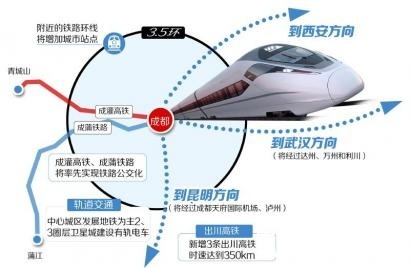 成都规划局市政处处长祝江力在会议上特别提到,为充分融入国家一带一路发展战略,成都将大力发展高铁网络,以弥补成都缺乏300公里以上高铁的现状。“成都将新增向北、向东、向南的多条高标准的时速350公里的出川通道。”记者了解到,成都将新增到西安出川高铁。同时,成都将新增一条由成都到郑州到武汉的高铁,同时还将增加一条从成都到泸州接昆明的出川高铁。