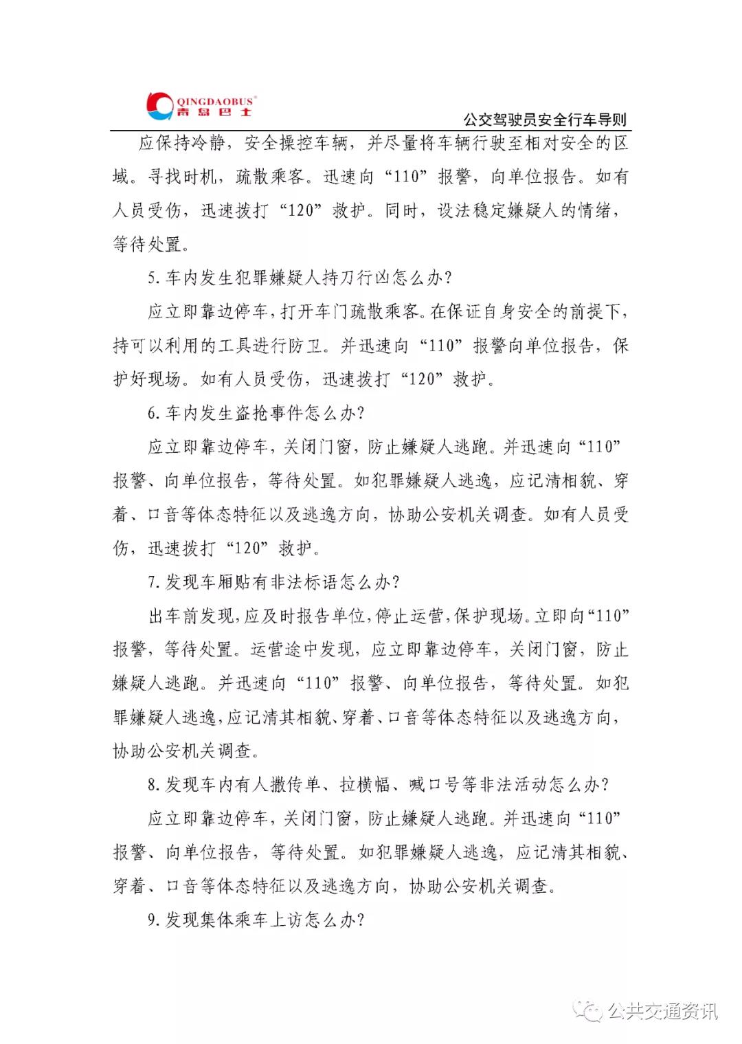 报警,等待处置。运营途中发现,应立即靠边停车,关闭门窗,防止 嫌疑人逃跑。并迅速向“110”报警、向单位报告,等待处置。如犯 罪嫌疑人逃逸,应记清其相貌、穿着、口音等体态特征以及逃逸方向,协助公安机关调查。
