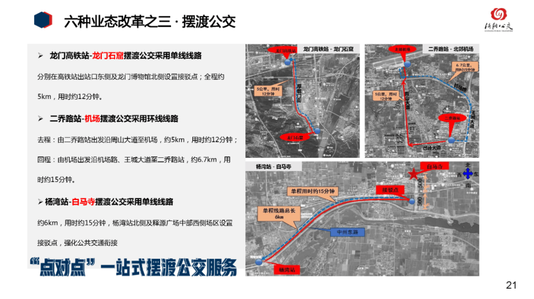 《方案》明确打造6种公交业态,除了“鱼骨式常规公交”,还有辐射式接驳公交、点对点摆渡公交、洛阳特色文旅公交、定制公交、网约公交,使服务更加精准、多元。