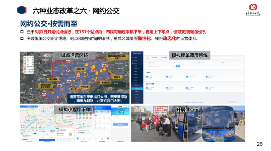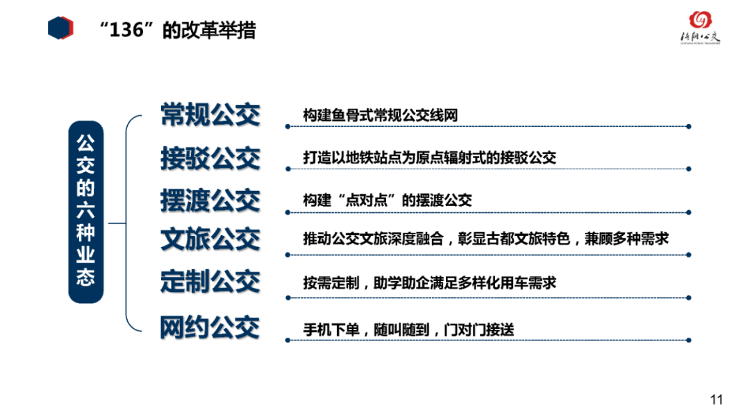随着市民群众交通出行更加多元化,公交主廊道线路重复度高、线路长周转慢、公交场站分布不均衡等问题日渐凸显,亟需改革。为此,市交投集团制定《公交运营改革方案》,全面打造功能层级清晰的公交线网结构,促进轨道交通与地面公交两网融合,形成以轨道交通为骨架、常规公交为主体,层次丰富、功能复合的公共交通体系,为市民提供安全、高效、优质、便捷的公交服务。