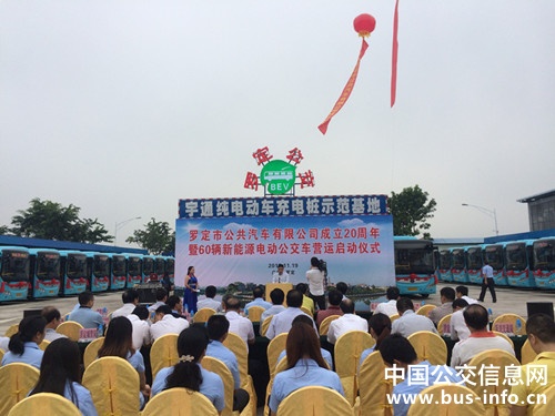 宇通E8纯电动公交车营运启动仪式在罗定公交新建成的新能源公交场站举行。随着这批新能源公交车的交付和投入使用,罗定公交将成为这面旗帜下新能源客车示范运营的一个标杆。