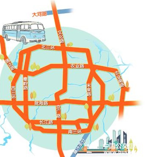 根据公交专用道总体廊道系统资料显示,中原路、建设路、花园路—紫荆山路、江山路、三全路等均将建设常规公交专用道。