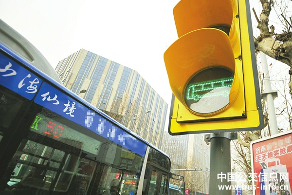 昨天,在泉城路青龙桥路口,专用信号灯提前为公交车“放行”,使其可快速通过路口。为缓解道路交通压力,提高公交出行能力,济南交警部门在全市范围推广公交专用车道基础上,再次在全市30余个路口设置安装了公交专用信号灯,目前已建成53组,下一步在待建改建的城区主次干道上还将视情况增设。据调研,由于公交车起步比私家车慢1—2秒,所以在前期设定时公交专用信号灯较普通直行信号灯可提前3—5秒变灯,这样公交车能比私家车提前2—3秒通过路口,提高了公交车的快速通行能力。