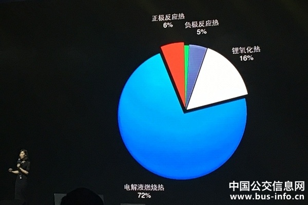 在普通锂电池从室温到热失控各组分反应及燃烧热占比中,正极反应热占6%,负极反应热5%,锂氧化热16%,电解液燃烧热72%。