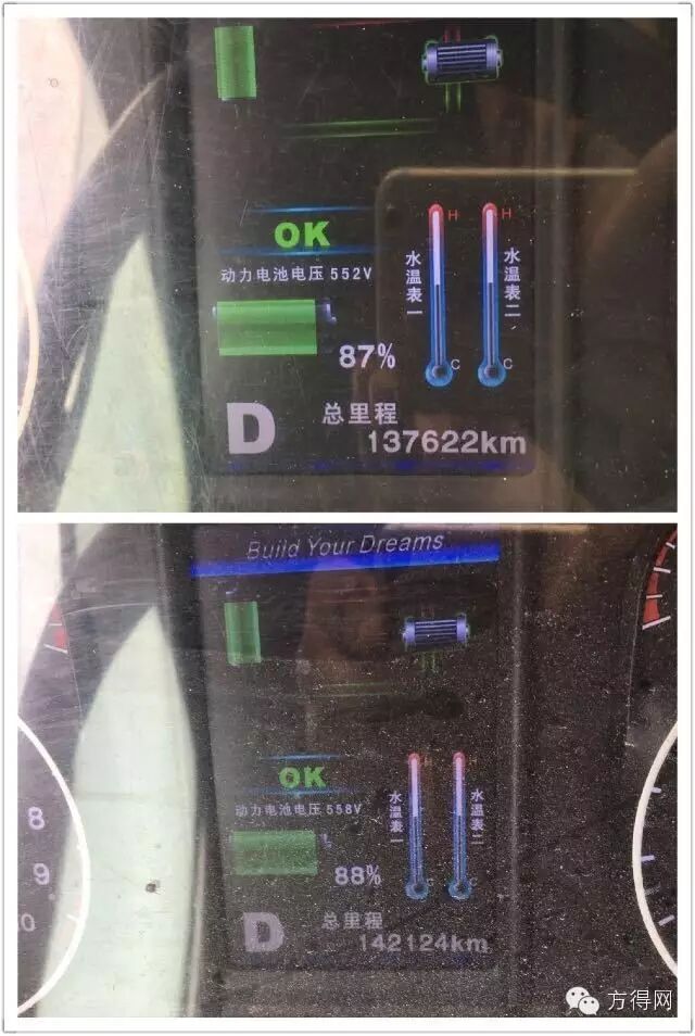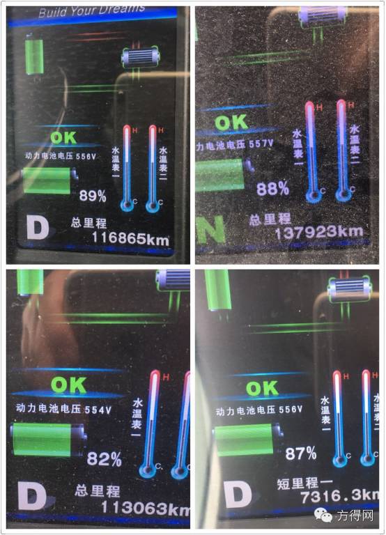 眼见为实,才能相信。听完这些,方得网小编还是要亲自看一看剩余电量。在126路起点站牌边上,小编等到了4辆返回站场的车辆,并记录下这4辆车在跑完8个单次(约48公里)后的电量剩余值,分别为89%、88%、82%、87%(不开空调)。