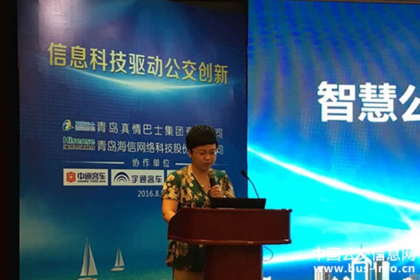 8月5日下午,青岛真情巴士集团有限公司、青岛海信科技网络有限公司联合打造的“智慧公交·青岛智造”真情巴士智慧公交项目在青岛西海岸新区首次亮相。中国道路运输协会城市客运分会、中国土木工程学会城市公共交通学会、青岛市交通运输委、青岛市黄岛区宣传部、发改局、工信局、交通局、应急办、综治办、交警大队等单位和来自全国的50多家公交企业、客车企业、车辆外设企业的领导及代表出席了真情巴士智慧公交项目汇报交流会。