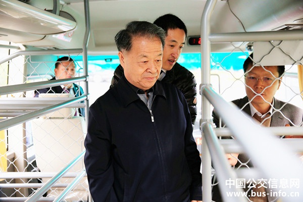 2016年11月9日,10辆乡村公路营运示范车整齐划一地停放在会场外,白绿相见的车身配色与美丽竹山的青山绿水搭配得相得益彰。下午2:00正值会议间隙,杨传堂携与会人员一同参观了示范车型。他首先登上海格KLQ6539KQQ4,对该款车小巧精致的车身表现出了浓厚的兴趣,并仔细向海格技术工程师咨询了车身数据。得知车身宽度仅有1.79米后,杨传堂对KLQ6539的道路通过性表示肯定。他还特别关注农村客运车的物品运载能力,详细向技术工程师了解了随行物品存放区的功能、容积。