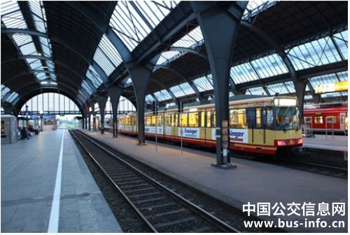 卡尔斯鲁厄市位于德国的西南部莱茵河畔的德法边境,该城市的火车主客站位于市中心以南约2km处的郊区,这导致乘火车的乘客需要换乘城市公共交通出入市区,很不方便。为了改善这种状况,卡尔斯鲁厄运输联盟(KVV)决定采用有轨电车与铁路共线运营(有轨电车在干线铁路上行使)的方法,使乘客无需换乘就可直接到达卡尔斯鲁厄市中心区。