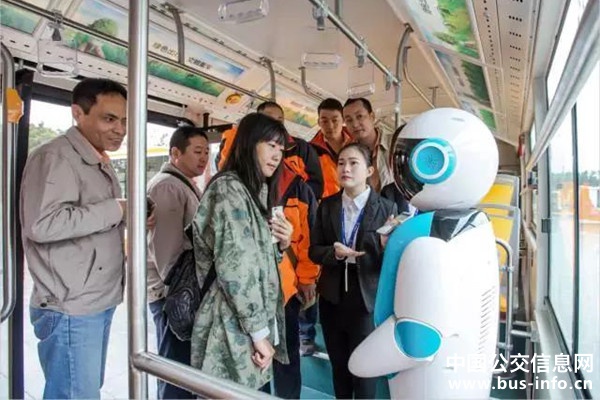 就乘客而言,C10装备了国内首款基于公交场景的车载智能出行机器人。这款机器人高约163厘米,头部能呈现100多组丰富表情,自带拍照互动功能;胸前拥有一块12英寸的触控彩屏,公交乘客可通过机器人自带WiFi热点功能进行面对面或远程控制,指导其挥臂、转头等动作。通过与这款机器人互动,乘客们还能获得公交线路周边的站点、换乘信息、娱乐生活资讯、聊天交友的功能。